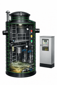 Решение для перекачки хозяйственно‑бытовых и производственных стоков. Проектируется с учётом залповых сбросов, засоров и необходимости обслуживания.