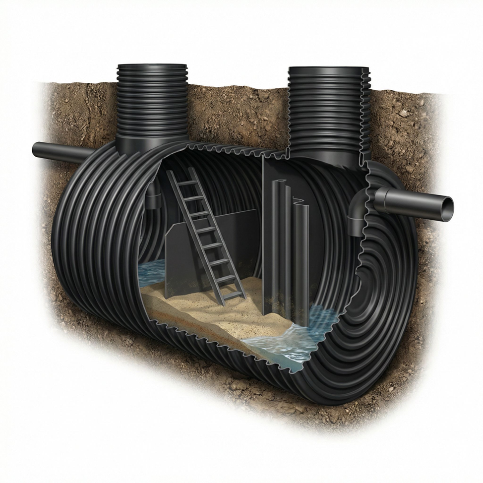 Пескоуловители производятся компанией "Сток Полимер" по ТУ 22.21.21-001-35185007-2019.